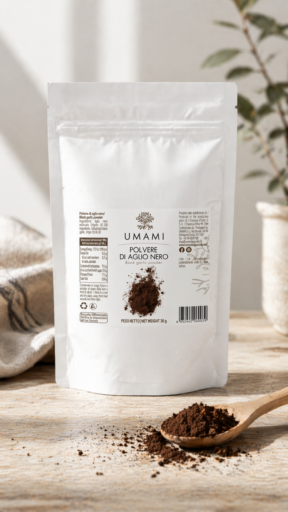 Fine, sottile e facile da dosare, la polvere di aglio nero aggiunge personalità ai piatti e permette di sperimentare in cucina con un ingrediente considerato un vero superfood, apprezzato non solo per il gusto ma anche per le sue caratteristiche nutrizionali.